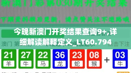 今晚新澳门开奖结果查询9+,详细解读解释定义_LT60.794,为各位彩民朋友们带来最新的开奖信息。新澳门作为澳门地区知名的彩票平台,一直以公正、公平、公开的原则为彩民提供服务。今晚的开奖结果将直接影响到众多彩民的中奖情况,因此备受瞩目。接下来,我们将对今晚的开奖结果进行详细解读和解释,帮助大家更好地了解开奖情况。
