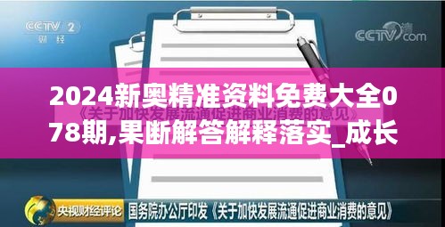 在当下这个知识更新换代迅速的时代,获取精准、有价值的资料变得尤为重要,人们对于高质量资料的需求日益增长,而《2024新奥精准资料免费大全078期》正是为了满足这一需求而生,它不仅提供了丰富的信息资源,还以果断解答和解释落实的方式,帮助用户快速成长。
