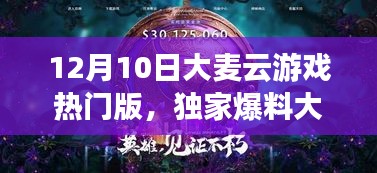 12月10日的新版本,大麦云游戏将收录众多热门游戏,满足不同玩家的需求,无论你喜欢动作冒险、竞技射击,还是策略塔防、角色扮演,这里都能找到你的心头好。