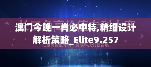 澳门,作为中国的特别行政区,其博彩业闻名于世,澳门的一肖特码成为公众关注的焦点,在这样的背景下,《精细设计解析策略_Elite9.257》文件的推出,为大众提供了深入了解一肖特码的机会,本文将根据该文件,探讨一肖特码的特点、解析策略及应用,并为澳门的公共政策讨论提供新的视角。