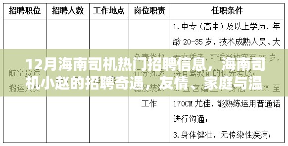 摘要:在海南的十二月,司机小赵意外发现了一份热门招聘信息。这不仅是一次求职机遇,更是一次充满友情、家庭与温暖的奇遇。在这个季节里,小赵不仅找到了理想的工作,还感受到了人间的温情与关怀。招聘信息成为了他生活中一道美丽的风景,引领他走向更加美好的未来。