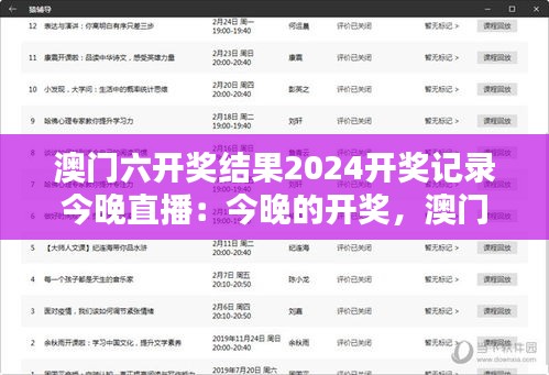 澳门六开奖结果2024开奖记录今晚直播:预测今夜大奖花落谁家!