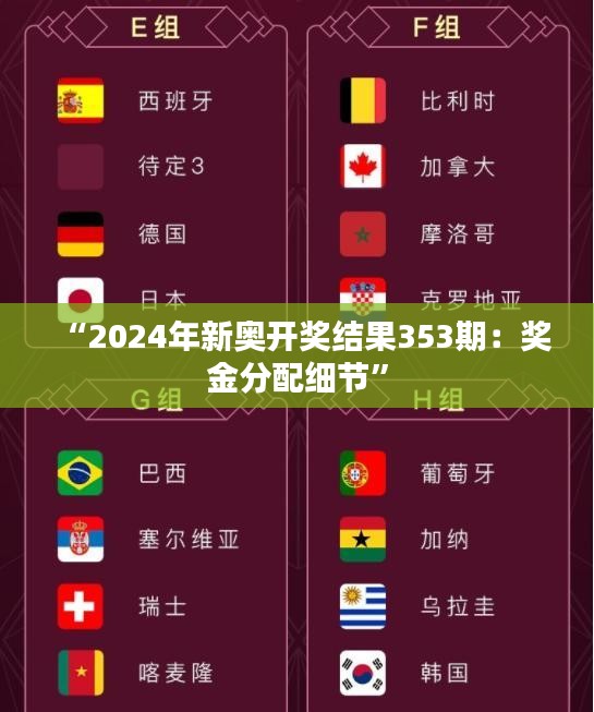 转载请注明来自稻田网络,本文标题:《“2024年新奥开奖结果353期:奖金分配细节”》