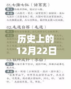 历史上的每一个日期都承载着丰富的文化内涵,而今天我们要聚焦的这一天——12月22日,在成语的世界里也有着独特的印记,本文将探讨历史上的这一天与成语之间的紧密联系,以及这些成语在现代社会中的影响,我们将从多个角度审视这一现象,以期深入理解其背后的文化价值和社会意义。