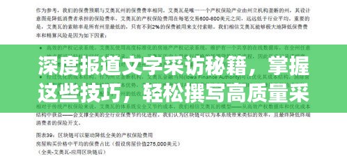 深度报道文字采访秘籍,掌握这些技巧,轻松撰写高质量采访文章!