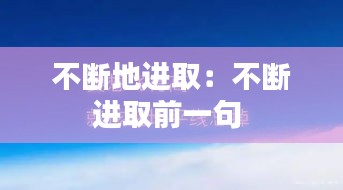 总之,不断地进取是我们实现梦想、创造价值的关键。在追求卓越的道路上,我们要坚定信念,勇往直前。只有保持进取心,我们才能在激烈的社会竞争中立于不败之地,创造出属于自己的辉煌。让我们携手共进,用进取心成就美好未来!