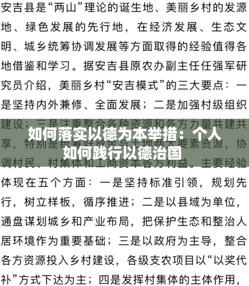 如何落实以德为本举措:个人如何践行以德治国