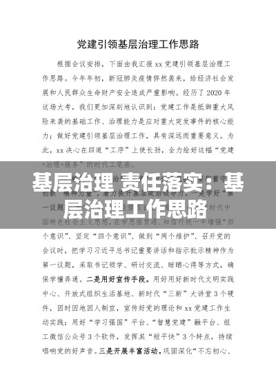责任落实是基层治理的核心。只有明确了责任主体,才能确保各项政策、措施得到有效执行。基层治理责任的落实,需要从以下几个方面来加强: