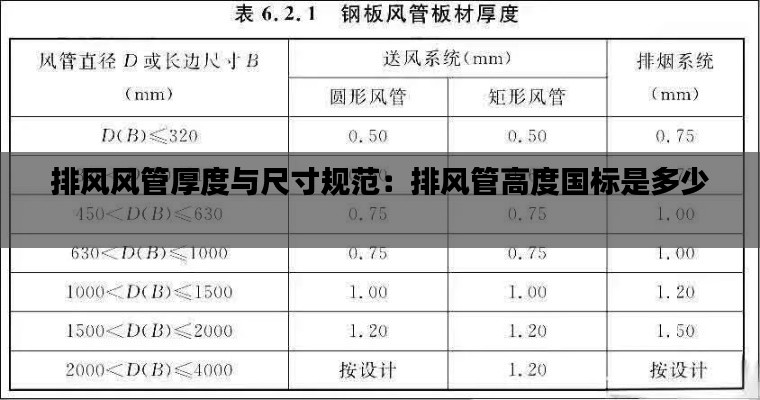 排风风管厚度与尺寸规范:排风管高度国标是多少