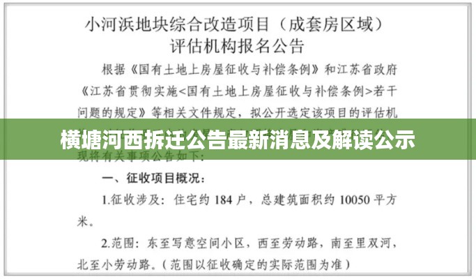 关于横塘河西拆迁公告公示最新的消息引起了广大市民的关注和热议,本文将从多个角度对这一问题进行深入分析和解读,以便读者更好地了解相关情况。