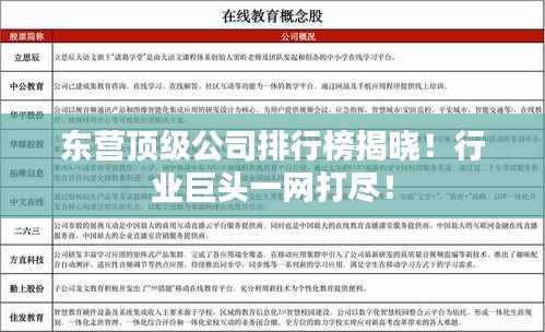就是东营顶级公司的排名介绍,这些企业在各自的领域都取得了卓越的成就,为东营的经济发展做出了重要贡献,在未来,这些企业将继续发挥自身优势,不断创新和发展,为东营的繁荣做出更大的贡献。