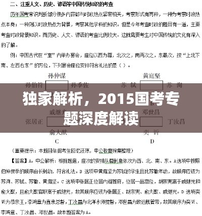 随着国家对公务员队伍的不断优化和改革,国考作为选拔优秀人才的重要途径,越来越受到广大考生的关注,本文将围绕“2015国考专题”进行全面解读,帮助考生更好地了解国考政策、考试内容、备考策略等相关信息。