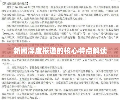 新闻深度报道作为一种重要的新闻传播形式,具有揭示事件背后深层原因、分析发展趋势、传递社会正能量等特点,在当今信息爆炸的时代,新闻深度报道的地位愈发重要,本文旨在浅析新闻深度报道的特点,以期更好地理解和把握其内在价值。
