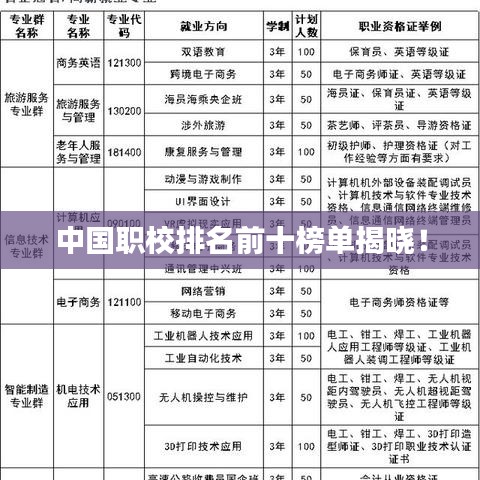 随着国家对职业教育的重视与支持,越来越多的学子选择进入职业学校深造,本文将为您揭晓当前中国职校在校排名前十名的学校,这些学校在教学质量、就业率、设施设备等方面均表现出色。