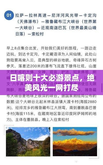 日喀则,这片充满历史与文化底蕴的土地,拥有众多令人心驰神往的景点,古老的佛教文化与现代风情交相辉映,构成了一幅幅美丽的画卷,让我们一同探寻日喀则景点排名前十名,感受这片土地的无穷魅力。