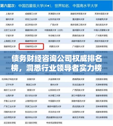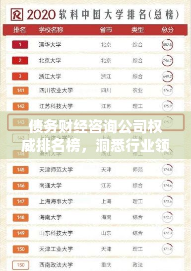 随着全球经济的日益发展,财经咨询行业逐渐崭露头角,尤其在债务领域扮演着举足轻重的角色,本文将为您揭示债务财经咨询公司的排名,带您了解行业领导者与权威机构。