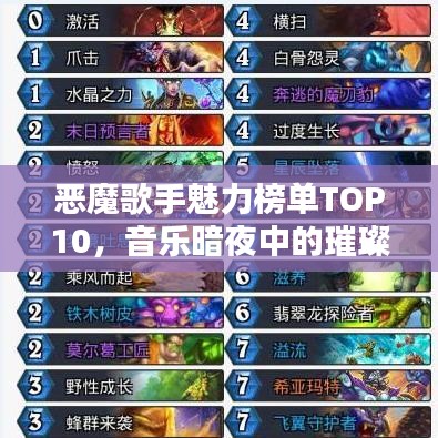 音乐的世界多彩多姿,各式各样的音乐风格如繁星般点缀其中,在这充满魔力的音乐宇宙中,恶魔歌手以其独特的魅力和深沉的嗓音占据了一席之地,本文将为您揭晓恶魔歌手排名前十名,这些音乐巨匠以其独特的风格,引领着音乐界的暗黑风潮。