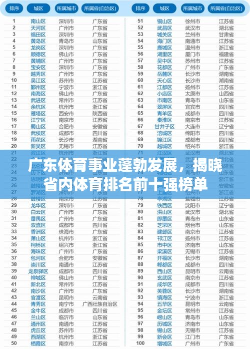近年来,广东省在体育事业上的投入与成绩备受瞩目,随着全民健康意识的不断提高,广东省在体育领域的表现也愈加突出,本文将为您揭晓广东体育排名前十名,带您领略广东体育事业的蓬勃发展。