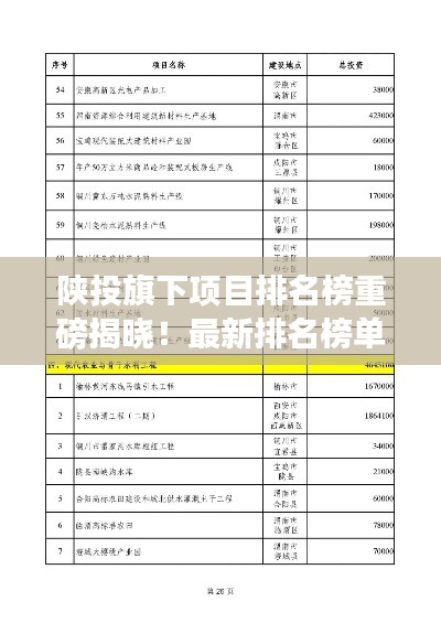 近年来,随着陕西省经济的快速发展,陕投集团作为地方龙头企业,其旗下项目备受关注,本文将为您带来陕投集团旗下项目排名榜的最新情况,带您了解这些项目的最新进展和影响力。