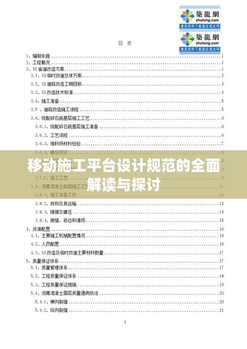 随着科技的进步和建筑行业的快速发展,移动施工平台在各类工程项目中的应用越来越广泛,为了确保移动施工平台的安全、高效、规范运行,制定一套完善的移动施工平台设计规范显得尤为重要,本文将从设计原则、结构设计、安全防护、操作便利性及环保要求等方面,对移动施工平台设计规范进行详细介绍。