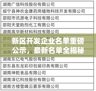 随着城市化进程的加速,新区开发成为推动城市发展的重要力量,为了加强新区开发的管理与规范,确保各项工作的透明度和公正性,最新一批新区开发企业名单已经公示,本文将围绕这一主题展开,介绍相关背景、目的、企业名单以及影响等方面。
