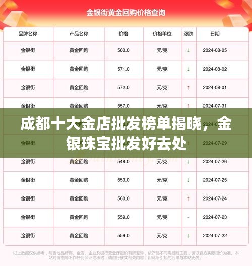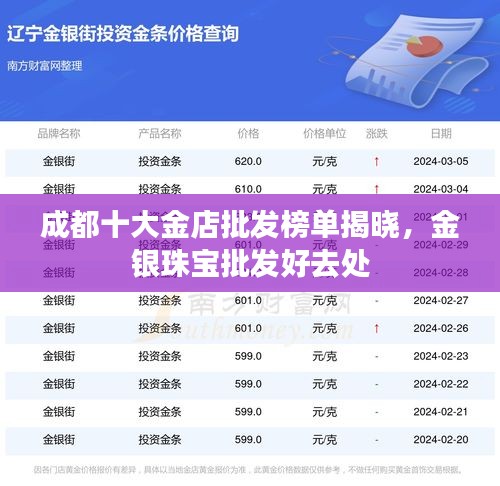 成都是中国西南地区的重要城市,也是珠宝金饰行业的繁华之地,众多的金店遍布大街小巷,为消费者提供各式各样的黄金饰品,本文将为您介绍成都批发金店排名前十名,这些金店以其优质的产品、良好的信誉和完善的售后服务,赢得了广大消费者的信赖。