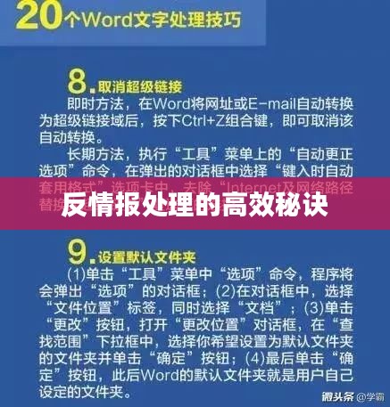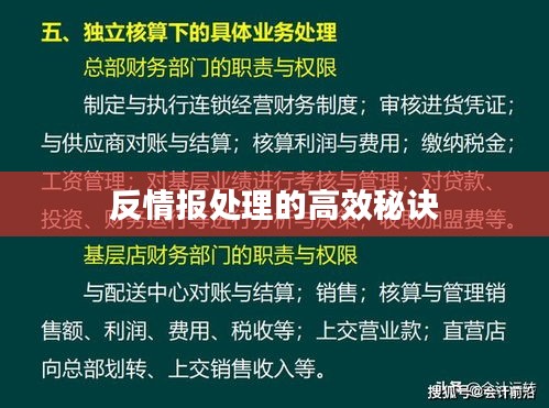 随着全球化和信息化的发展,情报工作在现代社会中的地位愈发重要,反情报工作作为国家安全、企业安全乃至个人安全的重要一环,其高效处理显得尤为重要,本文将探讨如何实现反情报处理的高效化,以期为相关人士提供有益的参考。