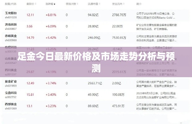 随着全球经济的不断发展和市场的繁荣,黄金作为一种重要的贵金属和避险资产,其价格一直备受关注,本文将重点关注足金最新金价今日价格,分析市场走势,并尝试对未来进行预测。