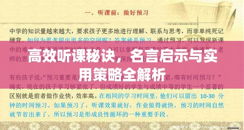 听课,是学生学习生涯中的一项重要活动,如何在有限的时间内高效吸收知识,成为每位学子追求的目标,本文将从高效听课的名言出发,探讨如何在实际课堂环境中运用这些智慧,提高学习效率。