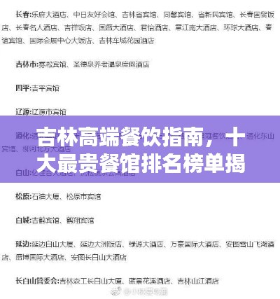 身为一个美食爱好者,对于各地的美食总是怀有无限的好奇与向往,我将为大家带来吉林地区最贵的餐馆排名前十名,这些餐厅不仅提供美食,更提供了一种独特的体验与享受。