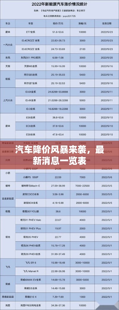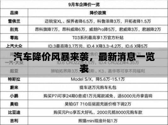 随着市场竞争的加剧和消费者需求的不断变化,汽车行业不断推陈出新,各大品牌之间的竞争加剧,为了吸引更多的消费者并提升市场份额,汽车降价成为了各大品牌常用的营销策略之一,本文将就今日最新的汽车降价消息表进行详细介绍和分析。