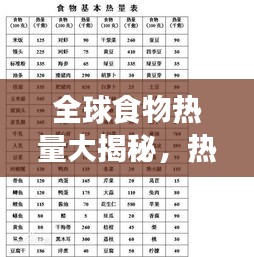 食物中的热量对于我们的健康和日常生活至关重要,了解各种食物的热量含量有助于我们更好地管理饮食,保持健康体重,本文将为您揭示世界食物热量排名,助您更好地了解日常食物中的热量含量。