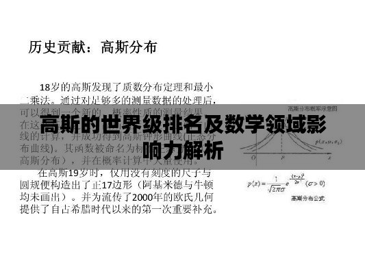 随着全球学术领域的不断发展,许多杰出的科学家以其卓越的贡献成为了人们敬仰的楷模,在这其中,高斯作为数学界的重要人物,其世界排名及其影响力一直备受关注,本文将围绕高斯的世界排名、生平贡献以及在数学领域的影响力进行深入探讨。