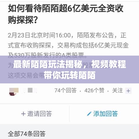 陌陌作为一款社交软件巨头,一直在不断创新和更新功能,以满足用户的各种需求,本文将为大家介绍最新陌陌玩法,通过视频教程的形式,详细解析各项功能及操作技巧,帮助大家更好地体验陌陌的魅力。