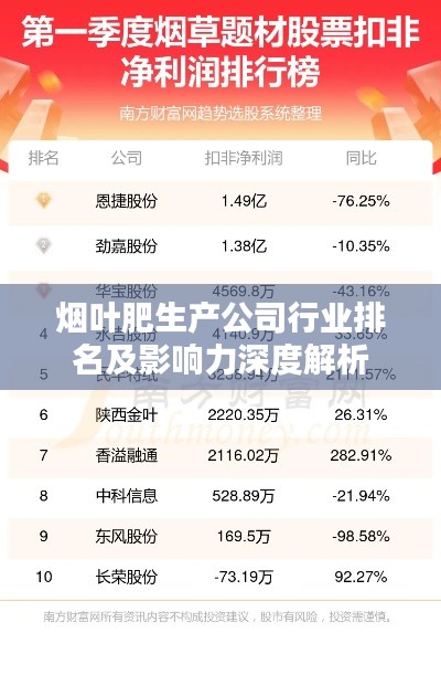 随着农业产业的不断发展,烟叶肥生产行业逐渐崭露头角,本文将探讨全球范围内烟叶肥生产公司的排名及其行业影响力,揭示这些公司在市场竞争中的地位以及未来可能的发展趋势。
