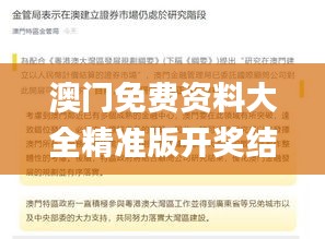澳门,这个充满异域风情的地方,以其独特的文化、丰富的娱乐方式和美食吸引了无数游客。澳门不仅是一个旅游胜地,也是一个充满机遇的地方。近年来,随着社会的发展与经济的繁荣,澳门的许多行业都在逐步壮大,彩票行业也随之崭露头角。澳门免费资料大全精准版开奖结果的信息无疑成为了许多彩民关注的焦点。