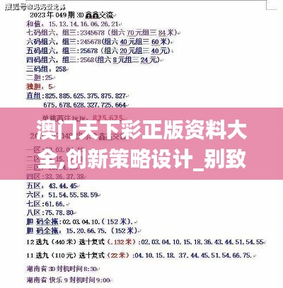 在如此竞争激烈的彩票市场中,制定有效的创新策略显得尤为重要。这不仅关乎彩票的销售额,更关乎彩民的体验和满意度。借助澳门天下彩票正版资料大全,彩民能够掌握更多信息,以用户为中心,进行科学的彩票分析,实现个性化的购彩策略。