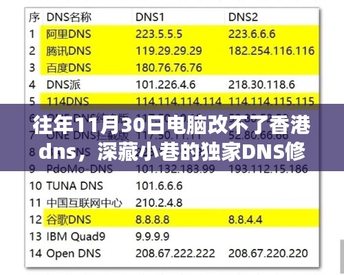 在每年的某个特殊日子——11月30日,电脑用户们总会遭遇一场奇怪的挑战,那一天,不论怎样尝试,电脑上的DNS设置总是无法顺利切换到香港的DNS服务器,这个看似技术性的难题背后,却隐藏着一段有趣的故事,我要带大家探索一家隐藏在小巷深处的特色小店,这里不仅有解决你所有DNS疑难杂症的妙招,更有一种别样的风情等你来发现。