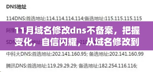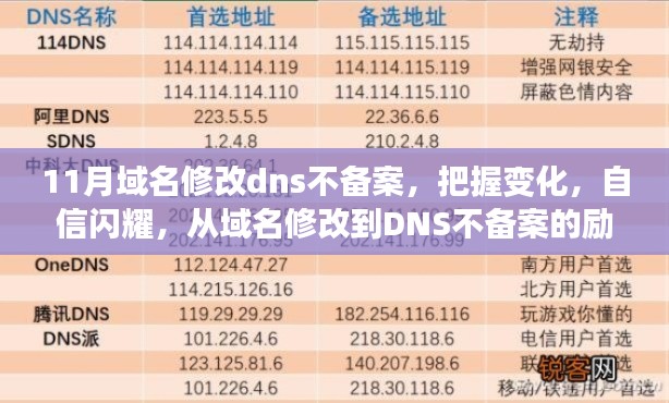 在这个充满变化和挑战的时代,让我们一起把握机会、迎接挑战、展现自我、创造辉煌,从域名修改到DNS不备案的励志之旅,我们一同前行!