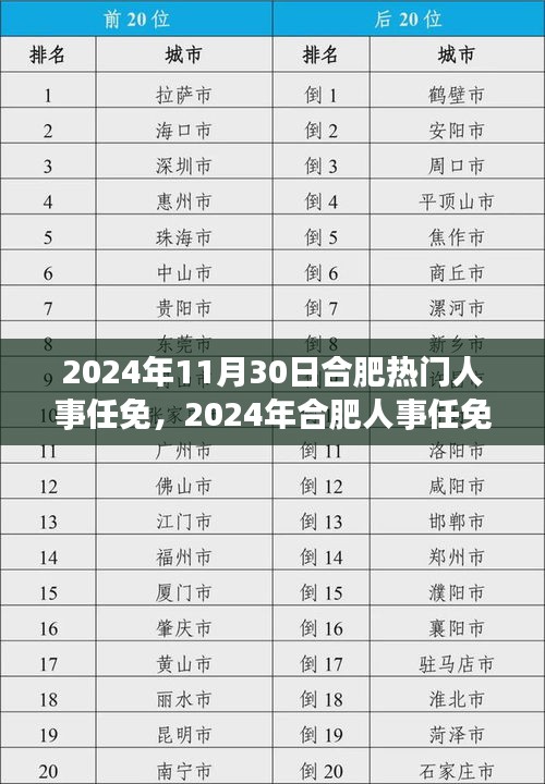 随着时代的进步和社会的发展,人事任免作为城市发展的重要一环,始终备受关注,本文将围绕“2024年11月30日合肥热门人事任免”这一主题,对近期合肥人事变动进行深入剖析,并展望未来的发展趋势。