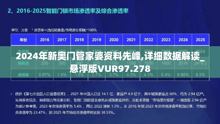 新奥门管家婆资料先峰凭借其卓越的数据解读能力和用户友好的操作界面,成为数据分析行业的佼佼者,悬浮版VUR97.278作为其核心组件,为用户带来强大的数据分析体验,展望未来,新奥门管家婆资料先峰将继续创新,以适应复杂的数据环境,并在市场中保持竞争力。