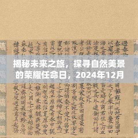 摘要:揭秘一场未来之旅,探寻自然美景的壮举。荣耀任命日定于2024年12月22日,这是一场心灵之旅,引领人们走向未知的世界。在这个特殊的日子,我们将一起见证自然的壮丽景色,感受大自然的魅力。这场旅行将带给我们无尽的惊...